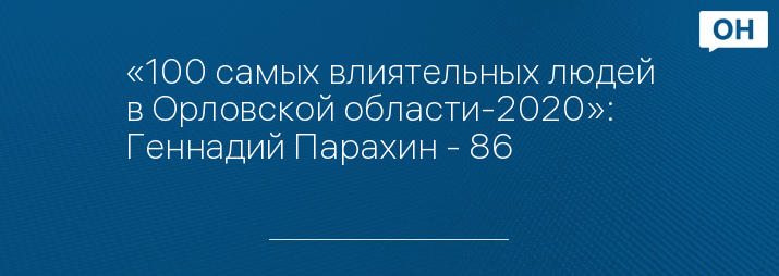 86-е место в рейтинге «100 самых влиятельных людей в Орловской области» в 2020 году занимает руководитель департамента промышленности и связи Орловской области, член правительства Орловской области Геннадий ПАРАХИН. В 2019 году он также занимал 86 строчку.