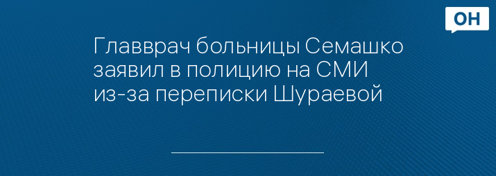 Главврач больницы Семашко заявил в полицию на СМИ из-за переписки Шураевой