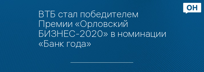 Орловский ВТБ признан экспертами Премии «Орловский БИЗНЕС-2020» победителем в номинации «Банк года».