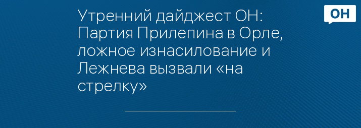 Утренний дайджест ОН: Партия Прилепина в Орле, ложное изнасилование и Лежнева вызвали «на стрелку»