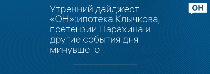 Утренний дайджест «ОН»:ипотека Клычкова, претензии Парахина и другие события дня минувшего