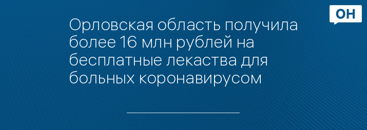 Орловская область получила более 16 млн рублей на бесплатные лекаства для больных коронавирусом
