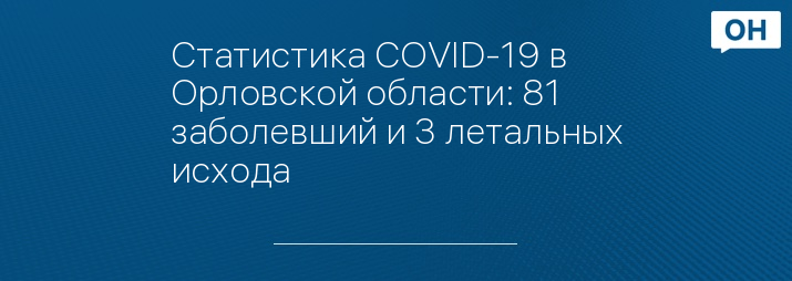 Статистика COVID-19 в Орловской области: 81 заболевший и 3 летальных исхода