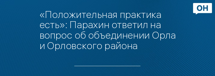 «Достаточно рано говорить об объединении города Орла с Орловским районом. Таких предложений не звучало, с инициативой такой ко мне не выходили. У меня таких планов пока нет. Хотя практика такая существует и в Белгородской области, в Тульской области. Их много можно перечислять – положительная практика есть. Если говорить о сегодняшней ситуации в Орле, то в городе действительно существует масса проблем в рамках которых можно было бы рассмотреть вопрос объединении. Например, транспортная сеть, когда двухзначные и трехзначные маршруты дублируют друг друга. Для Орловского района, например, общая инфраструктура, которой пользуется район, не имея на то обслуживающих организаций. Вопрос требует обсуждения. Но самое главное, что нужно – обсуждение этого вопроса с жителями, а не с чиновниками: как это повлияет на жизни людей, главное, чтобы отрицательных моментов не было», - сказал Парахин.