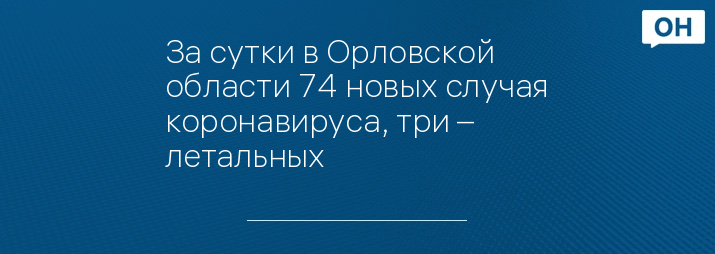 В Орловской области за минувшие сутки выявлено 74 случая коронавируса, еще три человека скончались, сообщили в федеральном оперативном штабе.