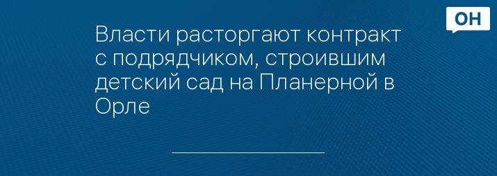 Власти расторгают контракт с подрядчиком, строившим детский сад на Планерной в Орле
