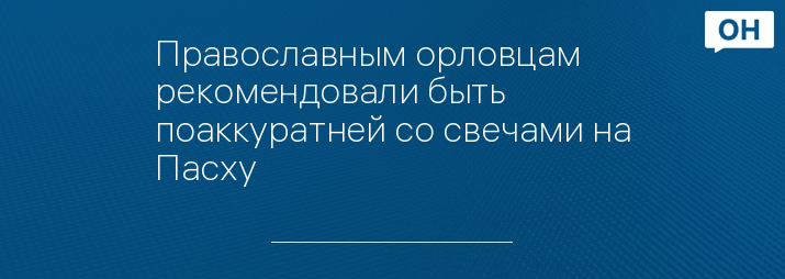 ГУ МЧС по Орловской области призвало православных орловцев быть аккуратнее со свечами во время празднования Пасхи. Сообщение об этом появилось на сайте ведомства.