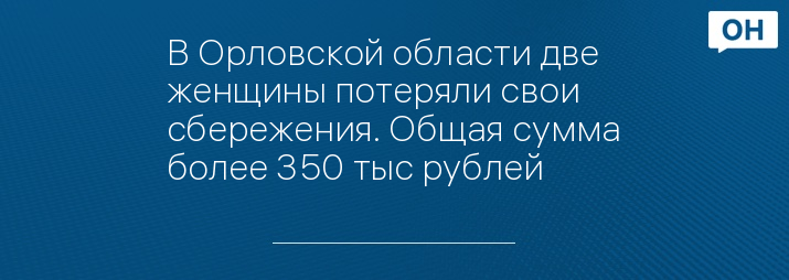 В Орловской области две женщины потеряли свои сбережения. Общая сумма более 350 тыс рублей