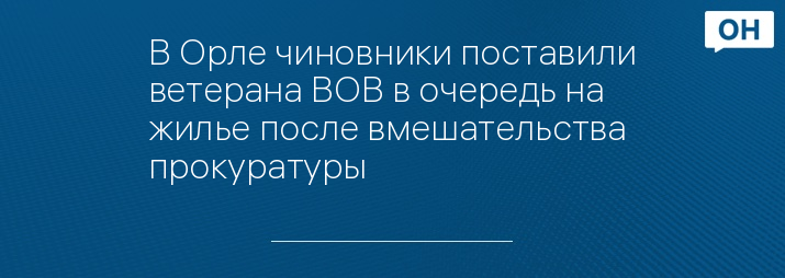 В Орле чиновники поставили ветерана ВОВ в очередь на жилье после вмешательства прокуратуры