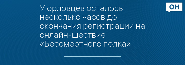 Прием заявок на участие в онлайн-акции «Бессмертный полк» завершается 7 мая в 20 часов. У жителей Орловской области еще есть время, чтобы успеть зарегистрироваться и рассказать о тех, кто защищал страну в годы Великой Отечественной войны.