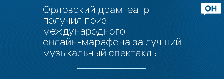 Орловский драмтеатр получил приз международного онлайн-марафона за лучший музыкальный спектакль