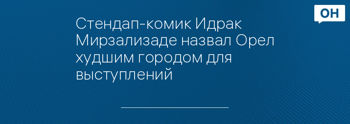 Стендап-комик Идрак Мирзализаде назвал Орел худшим городом для выступлений