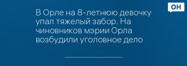 В Орле на 8-летнюю девочку упал тяжелый забор. На чиновников мэрии Орла возбудили уголовное дело