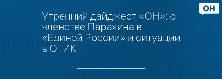 Утренний дайджест «ОН»: о членстве Парахина в «Единой России» и ситуации в ОГИК