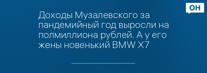 Доходы Музалевского за пандемийный год выросли на полмиллиона рублей. А у его жены новенький BMW X7