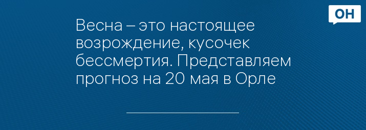 Весна – это настоящее возрождение, кусочек бессмертия. Представляем прогноз на 20 мая в Орле