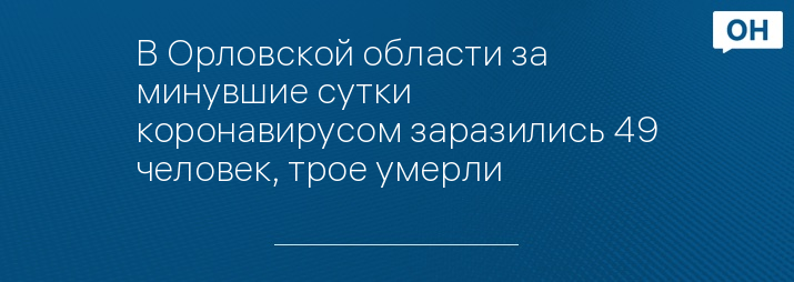 В Орловской области за минувшие сутки коронавирусом заразились 49 человек, трое умерли