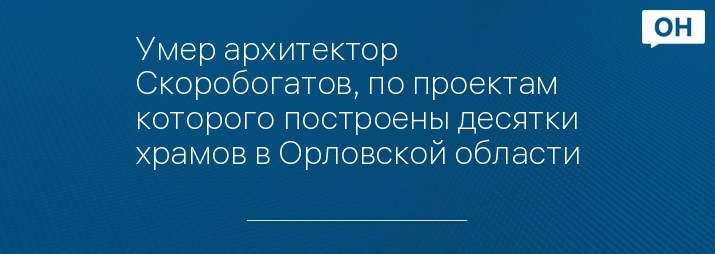 Умер архитектор Скоробогатов, по проектам которого построены десятки храмов в Орловской области