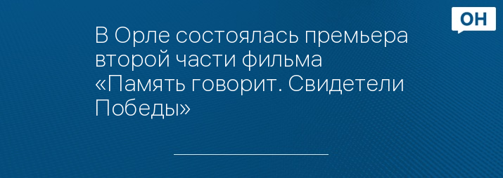 В Орле состоялась премьера второй части фильма «Память говорит. Свидетели Победы»