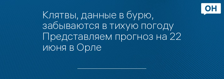 Клятвы, данные в бурю, забываются в тихую погоду Представляем прогноз на 22 июня в Орле