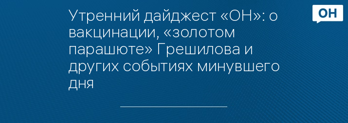 Утренний дайджест «ОН»: о вакцинации, «золотом парашюте» Грешилова и других событиях минувшего дня