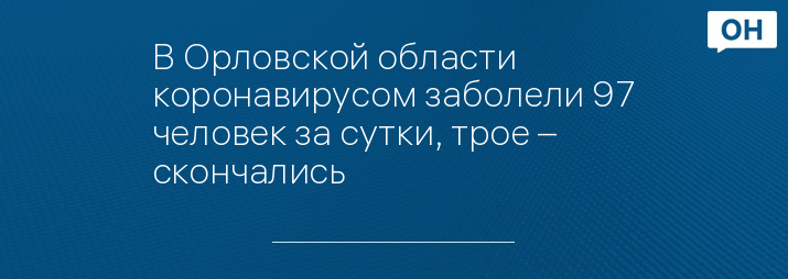 В Орловской области за минувшие сутки выявили 97 новых случаев коронавируса, а также три летальных исхода, сообщили в федеральном оперативном штабе.