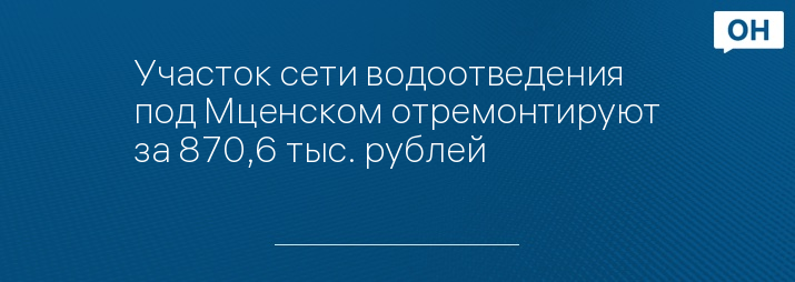Участок сети водоотведения под Мценском отремонтируют за 870,6 тыс. рублей