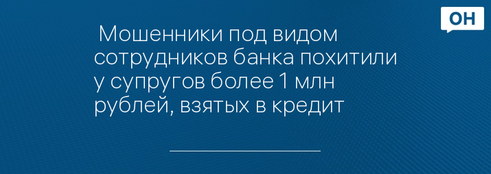 Мошенники под видом сотрудников банка похитили у супругов более 1 млн рублей, взятых в кредит