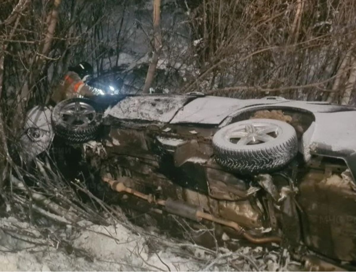 В Орловской области легковушка улетела в кювет с заснеженной трассы