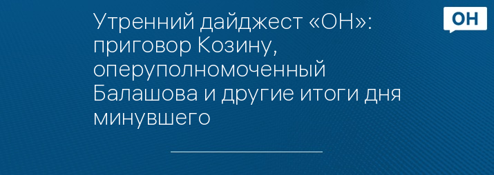 Утренний дайджест «ОН»: приговор Козину, оперуполномоченный Балашова и другие итоги дня минувшего
