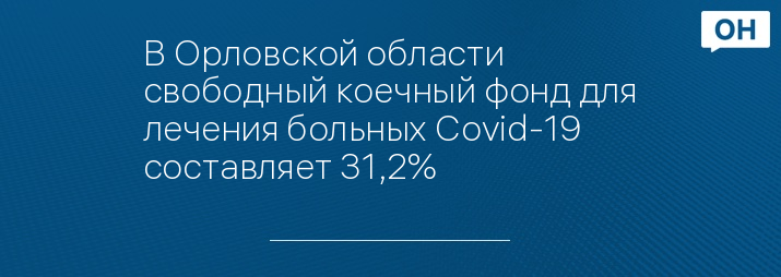 Сейчас свободный коечный фонд для лечения больных коронавирусом в Орловской области составляет 31,2%, сообщает обладминистрация.