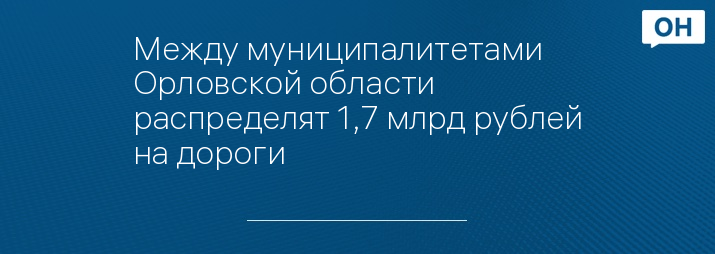 Между муниципалитетами Орловской области распределят 1,7 млрд рублей на дороги