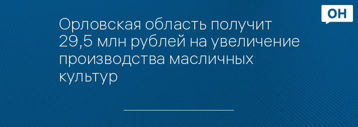 Орловская область получит 29,5 млн рублей на увеличение производства масличных культур. Распоряжение о выделении субсидий подписал премьер-министр РФ Михаил Мишустин, пишет «Федеральный бизнес журнал».
