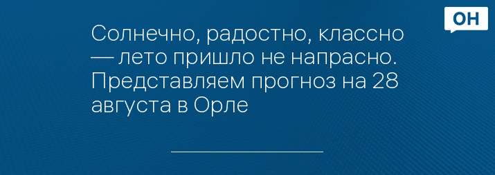 Солнечно, радостно, классно — лето пришло не напрасно. Представляем прогноз на 28 августа в Орле