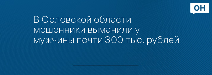 В Орловской области мошенники выманили у мужчины почти 300 тыс. рублей
