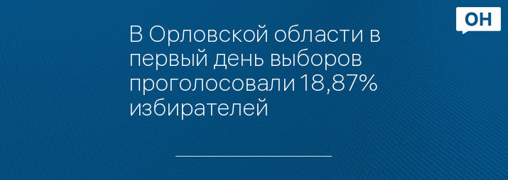 По состоянию на 20.00 в Орловской области проголосовали 18,87% избирателей, сообщает облизбирком.
