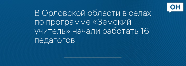В Орловской области в селах по программе «Земский учитель» начали работать 16 педагогов
