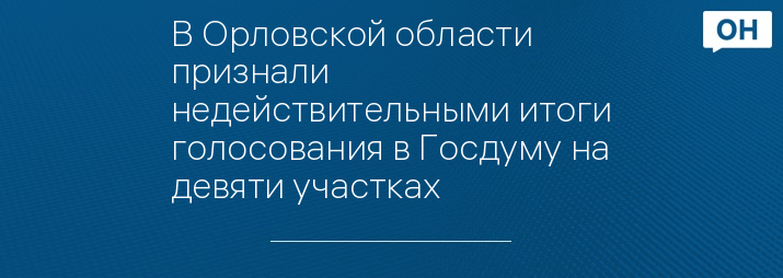 В Орловской области участковые избирательные комиссии признали недействительными итоги голосования в Государственную Думу на девяти участках, сообщает ТАСС.