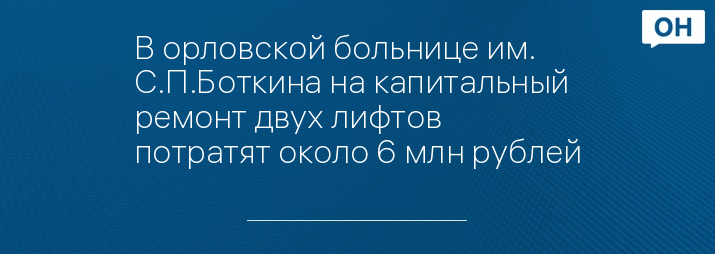 В орловской больнице им. С.П.Боткина на капитальный ремонт двух лифтов потратят около 6 млн рублей