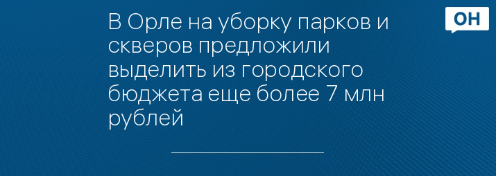 В Орле на уборку парков и скверов предложили направить еще 7 млн 300 тыс. рублей. Такая информация прозвучала сегодня на заседании орловского городского совета народных депутатов.