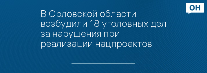 В Орловской области возбудили 18 уголовных дел за нарушения при реализации нацпроектов