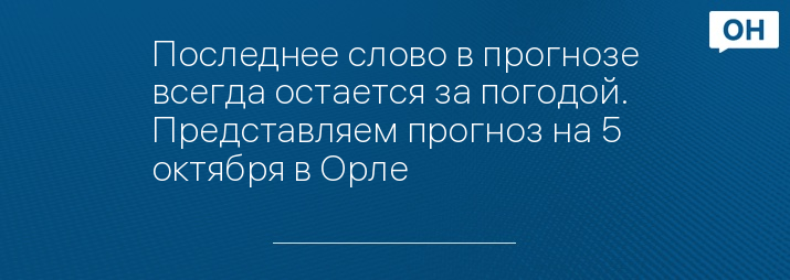 Последнее слово в прогнозе всегда остается за погодой. Представляем прогноз на 5 октября в Орле