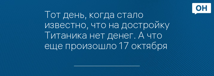 Тот день, когда стало известно, что на достройку Титаника нет денег. А что еще произошло 17 октября