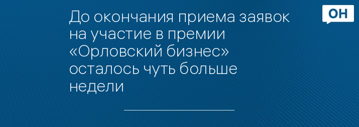 До окончания приема заявок на участие в премии «Орловский бизнес» осталось чуть больше недели