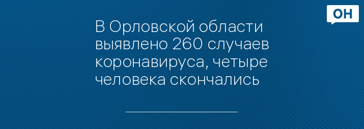 В Орловской области выявлено 260 случаев коронавируса, четыре человека скончались