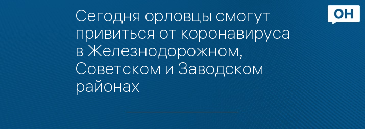 Сегодня орловцы смогут привиться от коронавируса в Железнодорожном, Советском и Заводском районах
