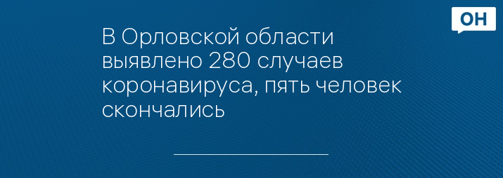 В Орловской области выявлено 280 случаев коронавируса, пять человек скончались