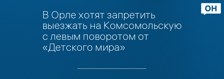 В Орле планируют запретить выезд от магазина «Детский мир» на улицу Комсомольскую с левым поворотом, сообщает госавтоинспекция региона.