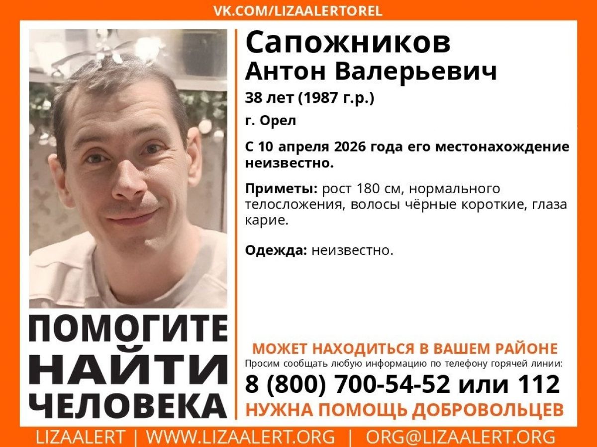 В Орле с 10 апреля разыскивают пропавшего мужчину, волонтёры просят помощи